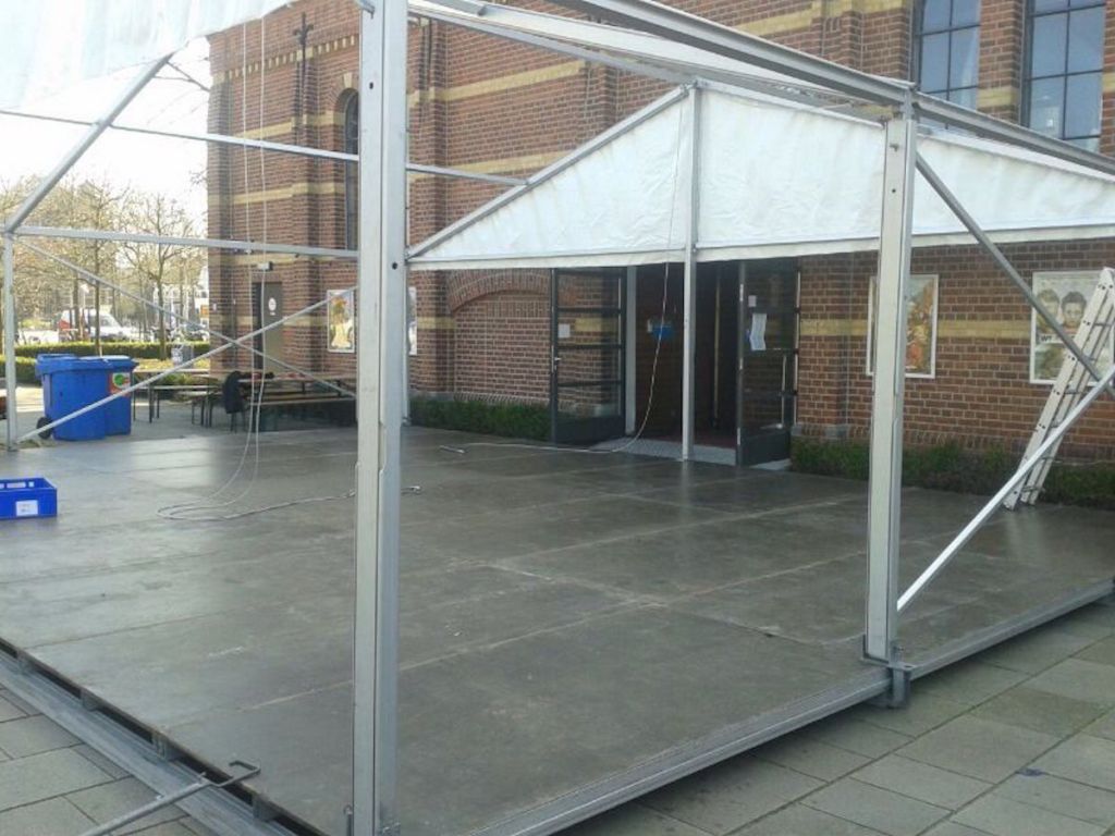 Om de tent optimaal te maken voor elke ondergrond bieden wij ook vloeren aan. Heeft het geregend en is het terrein modderig? Dan is dit geen probleem! Met een mooie vlonder vloer die zich perfect aanpast aan de oneffenheden van de grond kunnen uw bezoekers met een gerust hart uw tent binnengaan met droge voeten.